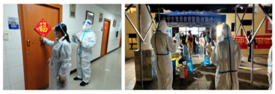 党员干部积极响应党委号召,下沉一线助力疫情防控,学校党委选派沟通协调能力强、具有奉献精神的21名处级干部担任学生宿舍楼栋长,63名处科级干部分配到各个楼栋参与网格化管理,负责核酸采集、学生服务保障工作,66名专职辅导员亮明党员身份、挂牌上岗,24小时入驻学生宿舍,负责资源调配、住宿餐饮、心理疏导、学生教育、服务保障工作,为学生学习生活提供舒适的环境。
