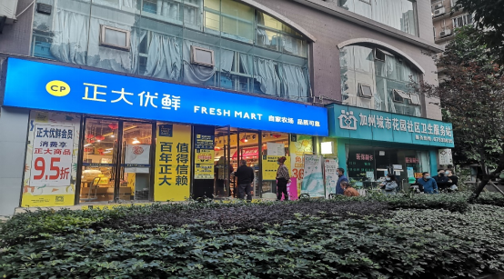 下午整改后小区超市有序排队购物
