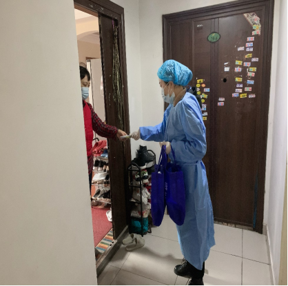 黄婧雯挨家挨户上门为业主发放核酸检测试剂盒