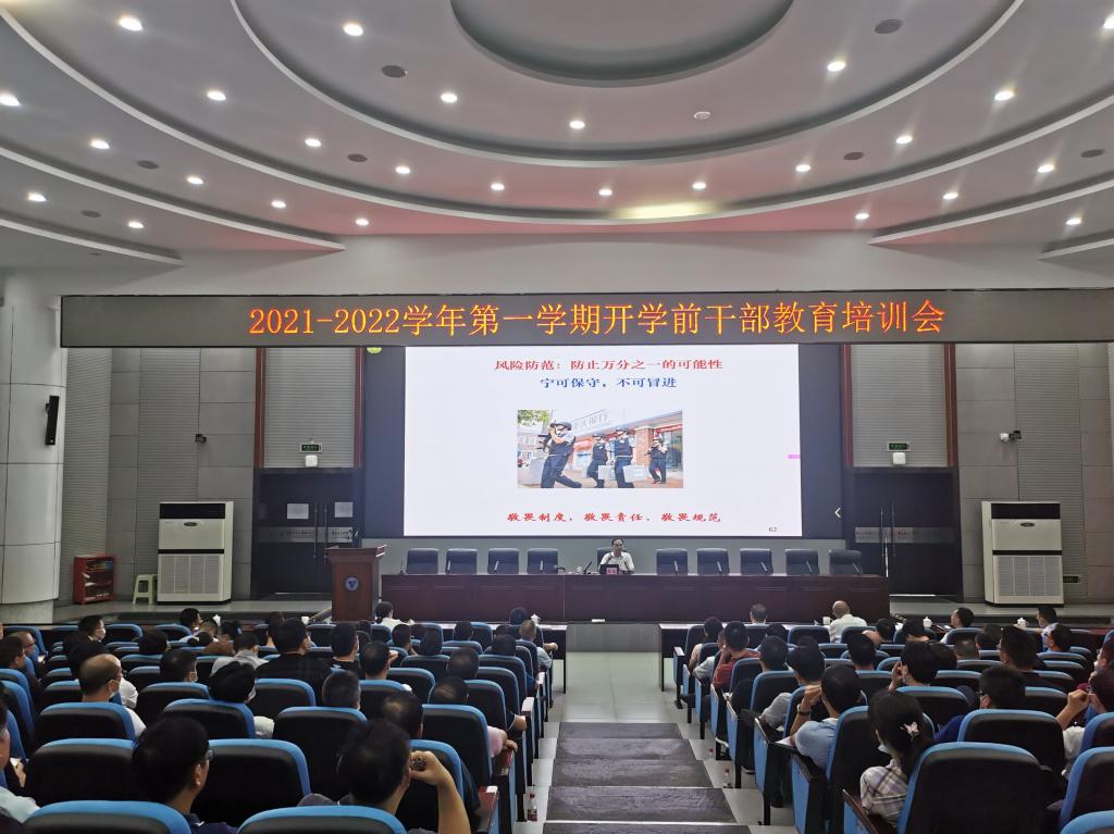 9月1日,我校在博远厅召开了2021-2022学年第一学期开学前干部教育培训暨工作布置会。全体校领导、处科级干部、专职组织员(纪检监察员)、校级教学督导、全校教研室主任、工程中心主任、思想政治辅导员参加会议。