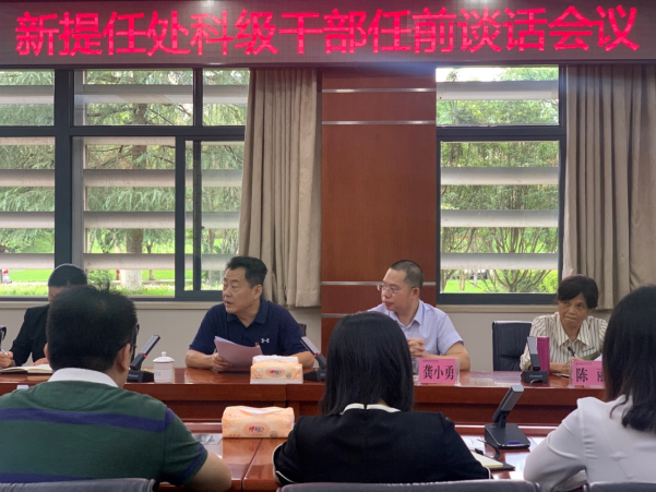 根据《党政领导干部选拔任用工作条例》有关规定,9月17日上午,学校在博润厅召开了新提任处科级干部任前谈话会,党委书记孙卫平,党委副书记龚小勇,纪委书记、监察专员陈丽,新提任22名处科级干部及其所在部门教职工代表、组织部相关负责同志参加了会议,会议由机关党委书记、党委组织部副部长徐继燕同志主持。