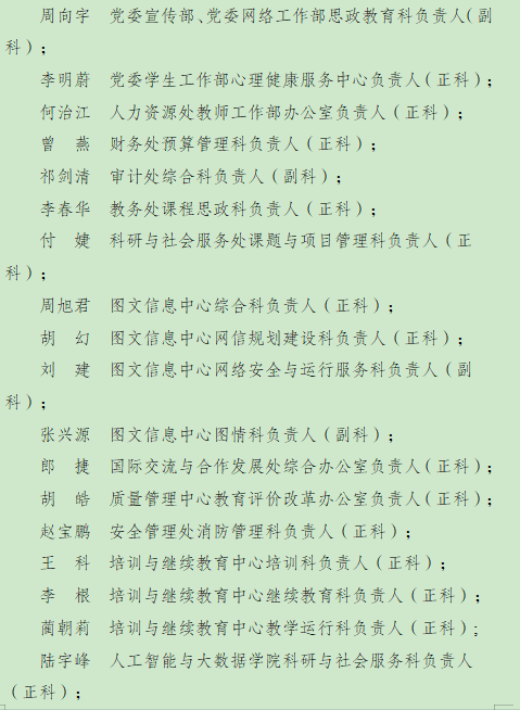 中共重庆电子工程职业学院委员会关于确定易圣等39名同志为科级岗位负责人的通知