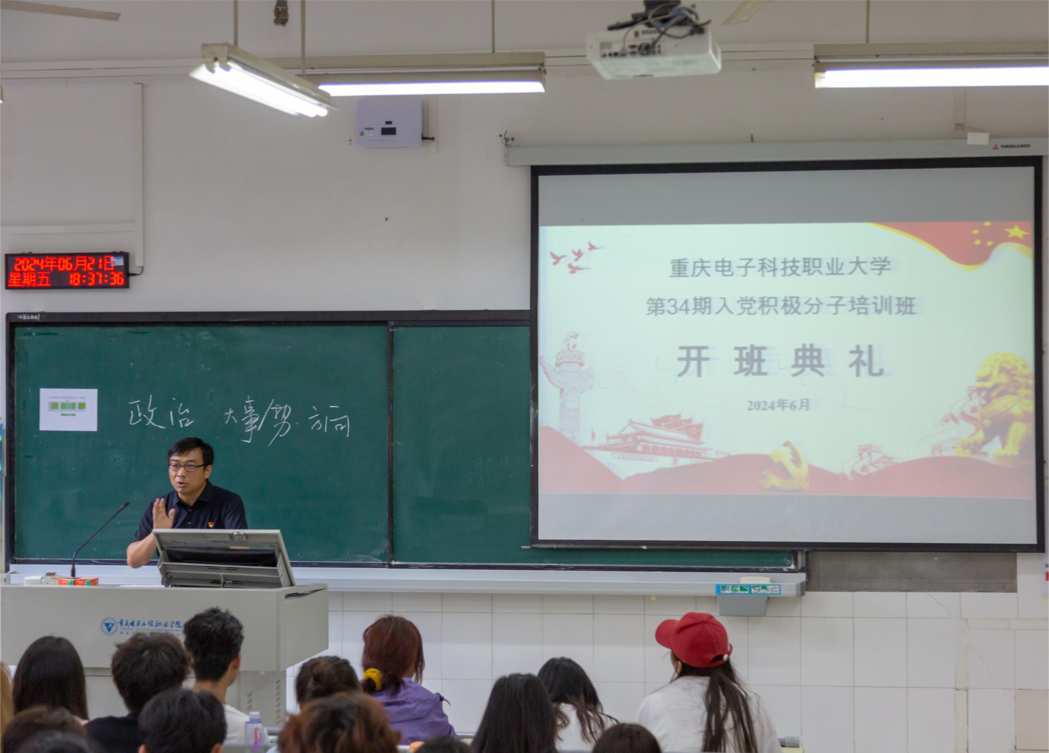 在开班仪式上,授课老师进行开班典礼动员讲话,并结合本次线下培训的教学安排,从讲政治、讲规矩、讲纪律的角度,要求全体参训学员端正学习态度、把握学习重点、坚持理论联系实际、遵守培训组织纪律,进一步端正入党动机,严格要求自己,以实际行动争取早日加入党组织。