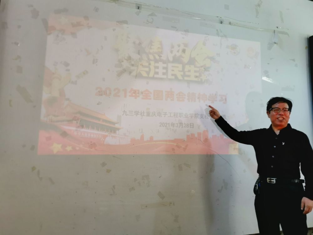 为认真学习贯彻2021年全国两会精神,3月28日,九三学社重庆市委沙坪坝区委重庆电子工程职业学院支社委员会开展2021年全国两会精神传达学习会议。会议由支社主任委员王正勇同志主持。