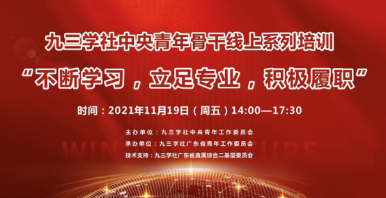 为提高青年社员履职能力,助力青年社员成长,九三学社中央组织部于2021年11月19日举办了九三学社中央青年骨干线上系列培训(第三期)活动。