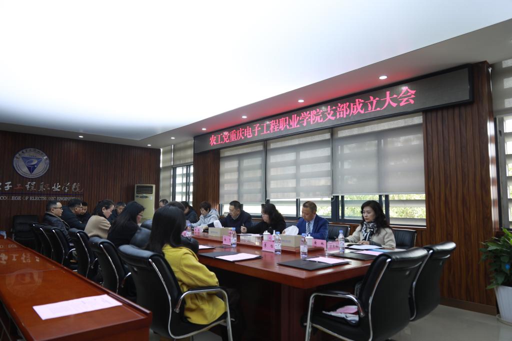 2023年2月24日,农工党重庆电子工程职业学院支部成立大会在学校博德楼三楼会议室召开。农工党重庆市委会副主委、农工党沙坪坝区委会主委、沙坪坝区人民政府副区长田盈,沙坪坝区委统战部常务副部长江涛峰,农工党沙坪坝区委会专职副主委黄林,农工党重庆市委会委员、农工党沙坪坝区委会副主委钟将等人出席会议。学校党委委员、副校长谢义华,党委委员、副校长、党委统战部部长刘洪光,党委委员、机关党委书记、党委统战部副部长徐继燕,统战部工作人员、九三学社重电支社代表以及农工党党员们应邀出席会议。大会由钟将副主委主持。