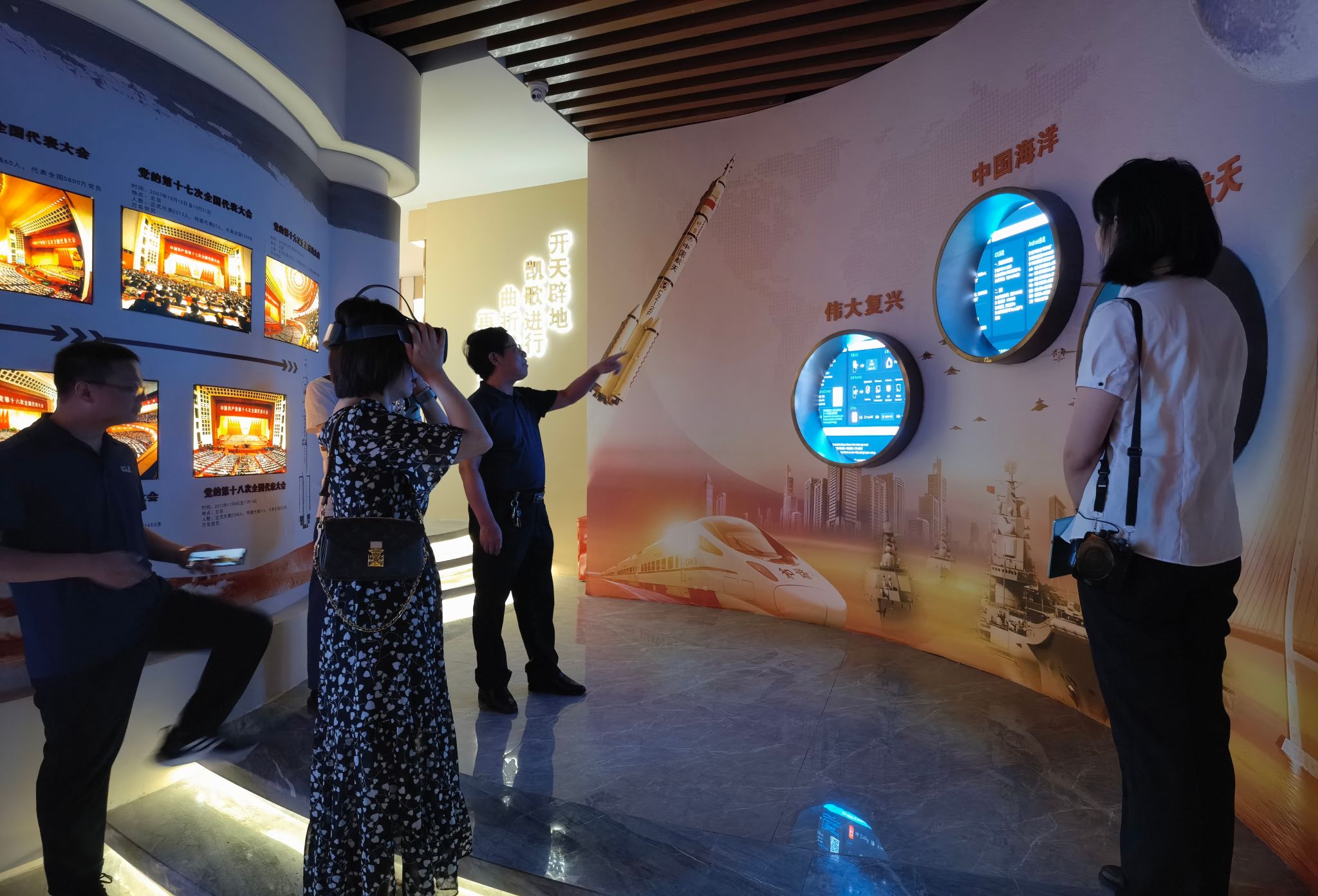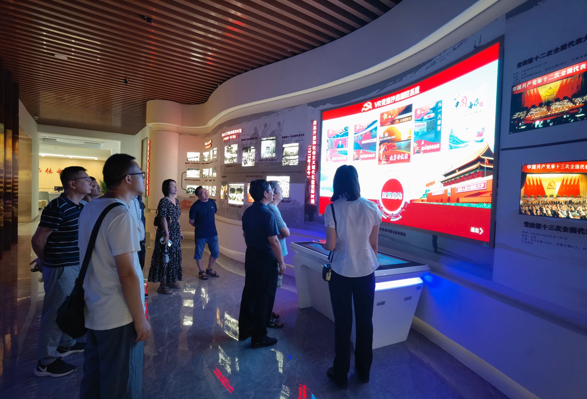 陈家桥街道党群服务中心党建办杨小雪向大家介绍了陈家桥街道党群中心建设情况和以“凝聚统战力量、共建和美家桥”为主题的统战宣传阵地打造情况,并带领大家体验了党群中心数字化建设成果,社员们借助3D、VR等沉浸式体验,身临其境般地感受到了中国共产党百年发展历程和辉煌成就。