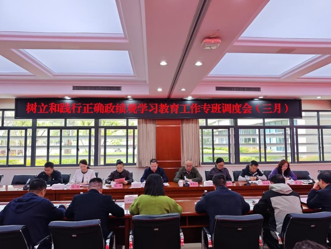3月30日上午,学校在博润厅召开树立和践行正确政绩观学习教育工作专班3月调度会,认真学习习近平总书记关于树立和践行正确政绩观的重要论述,传达学习上级有关文件精神,听取学习教育进展情况汇报,研究部署下一阶段重点任务。学校党委副书记、学习教育领导小组常务副组长龚小勇出席会议并作总结讲话,党委常委、副校长、学习教育领导小组副组长幸昆仑出席会议。会议由党委常委、党委组织统战部部长、综合协调工作组副组长疏勤主持,学习教育工作专班各工作组副组长、各二级党组织书记、工作专班及各二级党组织联络员参会。