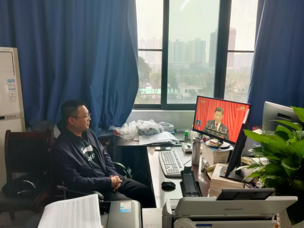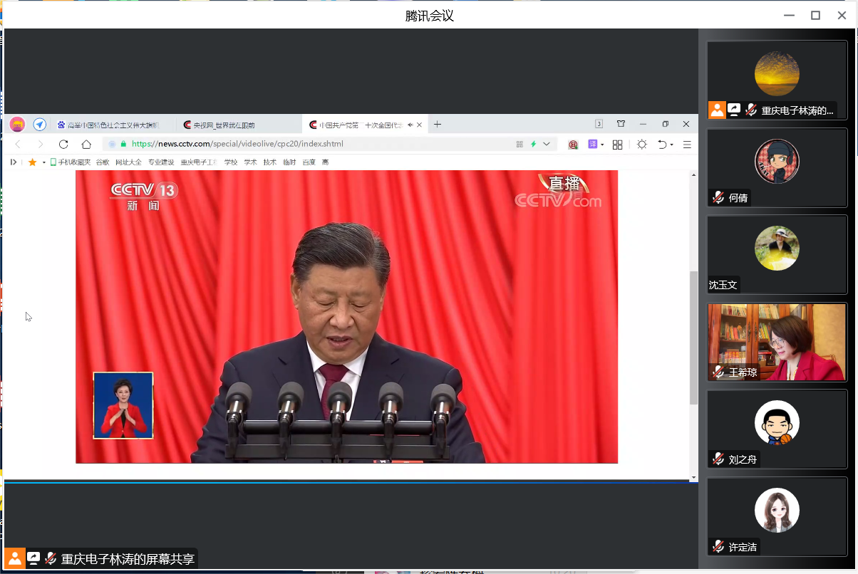 2022年10月16日上午,中国共产党第二十次全国代表大会在人民大会堂开幕,习近平代表第十九届中央委员会向党的二十大作报告。九三学社重庆电子工程职业学院支社社员在家中、在办公室、在学校疫情防控现场认真收看直播。支社社员通过腾讯会议,纷纷交流收看心得体会。