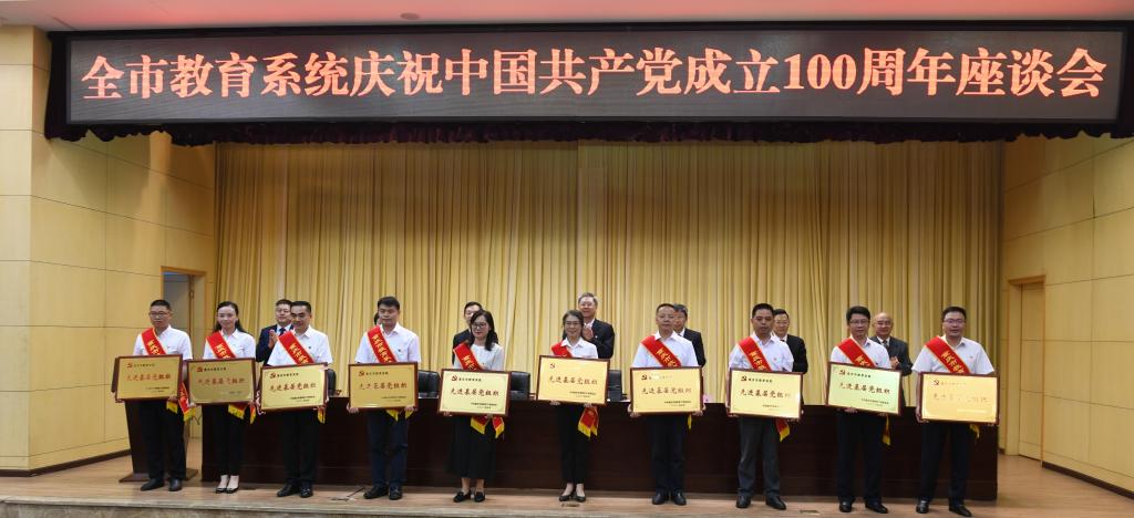 7月3日上午,中共重庆市委教育工委召开全市教育系统庆祝中国共产党成立100周年座谈会,学校党委获评“重庆市教育系统先进基层党组织”,是被表彰的九个高校党委之一,并作为先进基层党组织代表上台获颁奖牌。
